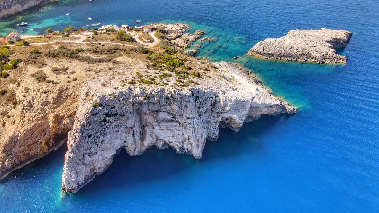 Tady se údajně sedm let flákal Odysseus, když ho okouzlila nymfa Kalypsó. A já se mu ani nedivím. Jeskyně, která vznikla propadnutím stropu, je dnes spojená s mořem asi dvacetimetrovým tunelem. Můžete sem doplavat nebo přijet na člunu. Kolem poledne, kdy slunce svítí přímo dovnitř, se voda zbarví do neuvěřitelných odstínů modré. Je to skvělé místo na koupání, šnorchlování.